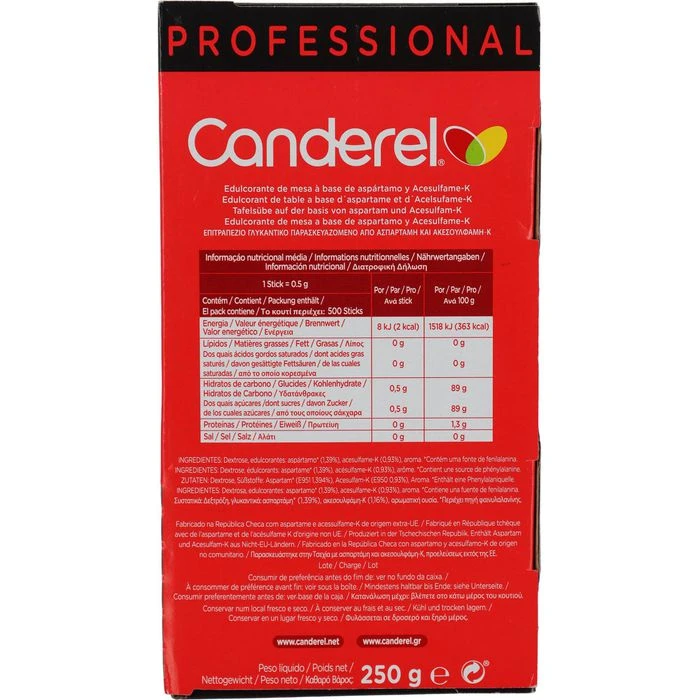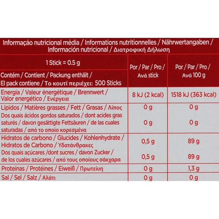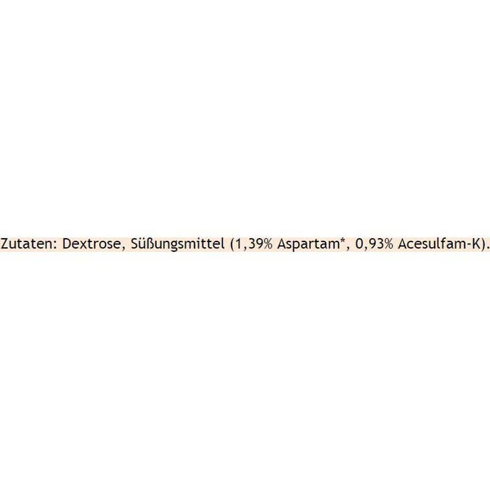 Zutaten: Dextrose, Süßungsmittel (1,39% Aspartam*, 0,93% Acesulfam-K).