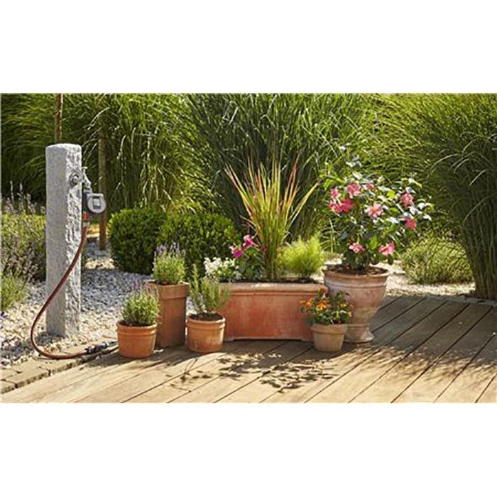 Lieferung: inkl. 1x Bewässerungssteuerung Flex, 1x Basisgerät 1000, 15 m Verlegerohr 1/2 Zoll (13 mm), 10 m Verteilerrohr 3/16 Zoll (4,6 mm), 7x regulierbarer Endtropfer 0 – 10 l/h, 9x Reihentropfer 2 l/h, 1x T-Stück 1/2 Zoll (13 mm), 10x Reduzier-T-Stück, 2x Verschlusskappe 1/2 Zoll (13 mm), 3x Verschlusskappe 3/16 Zoll (4,6 mm), 10x Rohrhalter 1/2 Zoll (13 mm), 15x Rohrhalter 3/16 Zoll (4,6 mm), 1x Reinigungsnadel