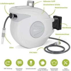 Tresko Schlauchbox GTSARL30 Schlauchtrommel 30+2m, 30 M Schlauchlänge, Weiß, 180 Grad Schwenkbar