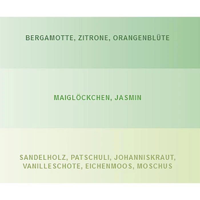 Enthält: Benzylsalicylat, 4-tert-Butycyclohexylacetat, 1-(1,2,3,4,5,6,7,8-Octahydro-2,3,8,8-tetramethyl-2-naphthyl)ethan-1-on, d-Limonen, Linalool, alpha-Hexylzimtaldehyd. Kann allergische Reaktionen hervorrufen.