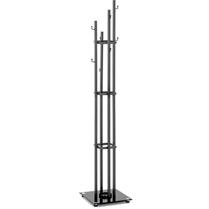 sonstiges: 8 Kleiderhaken, Schirmhalter mit Tropfmulde in schwarz, Standfuß aus 8 mm starkem Sicherheitsglas in schwarz lackiert