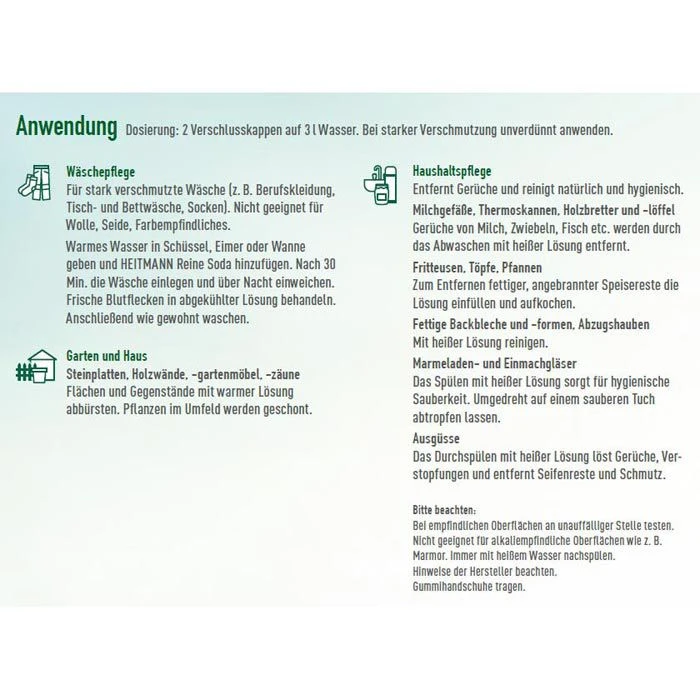 geeignet für: vielseitige Reinigung in Haushalt und Garten (u. a. Wäschepflege und Wasserenthärtung)