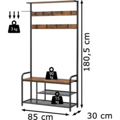Vasagle Garderobenständer LCR80X, Vintage, Mit 16 Haken, Metall / Holz, Schwarz / Braun