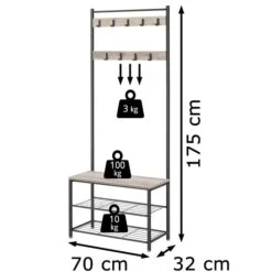 Vasagle Garderobenständer HSR45BX, Vintage, Mit 10 Haken, Metall / Holz, Schwarz / Braun