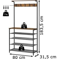 Vasagle Garderobenständer HSR410B01, Vintage, Mit 22 Haken, Metall / Holz, Schwarz / Braun