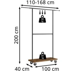 Vasagle Garderobenständer HSR65BX, Vintage, Rollen & Ablage, Bis 90 Kg, Metall / Holz, Braun