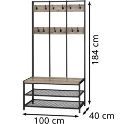 Vasagle Garderobenständer HSR98BX, Vintage, Mit 24 Haken, Metall / Holz, Schwarz / Braun