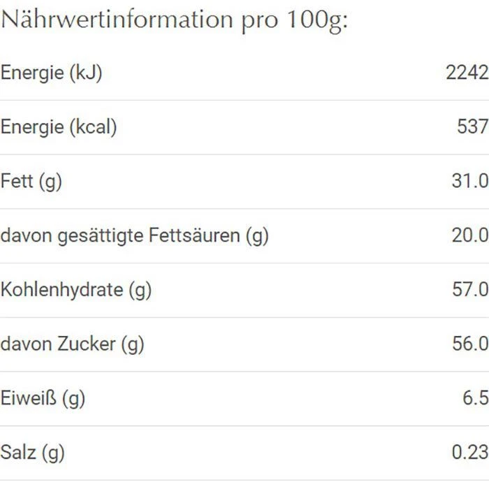 Kann HASELNÜSSE, MANDELN und andere SCHALENFRÜCHTE enthalten.
