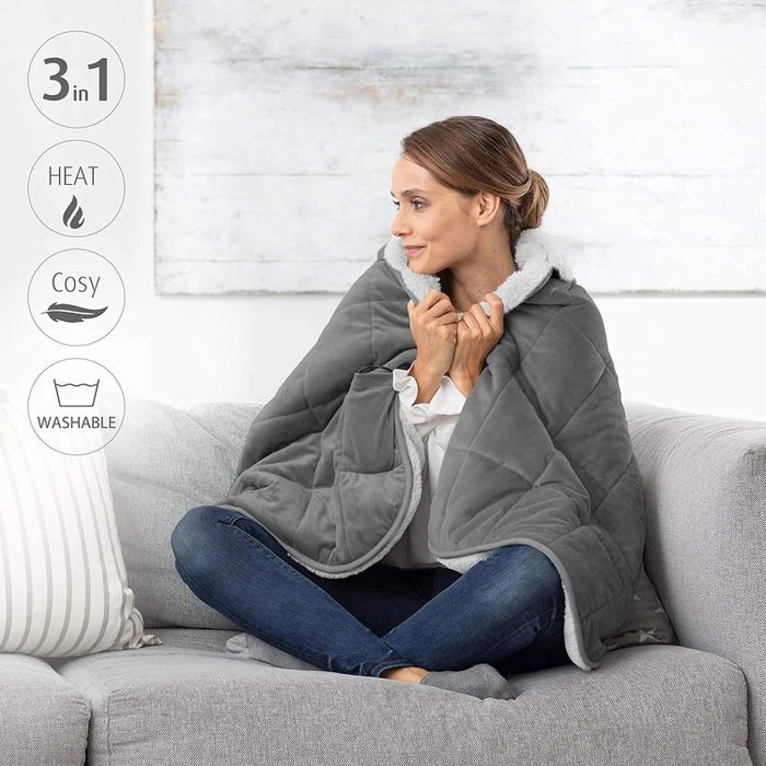 • 3 in 1 – Design – Heizdecke, Überwurf oder Poncho