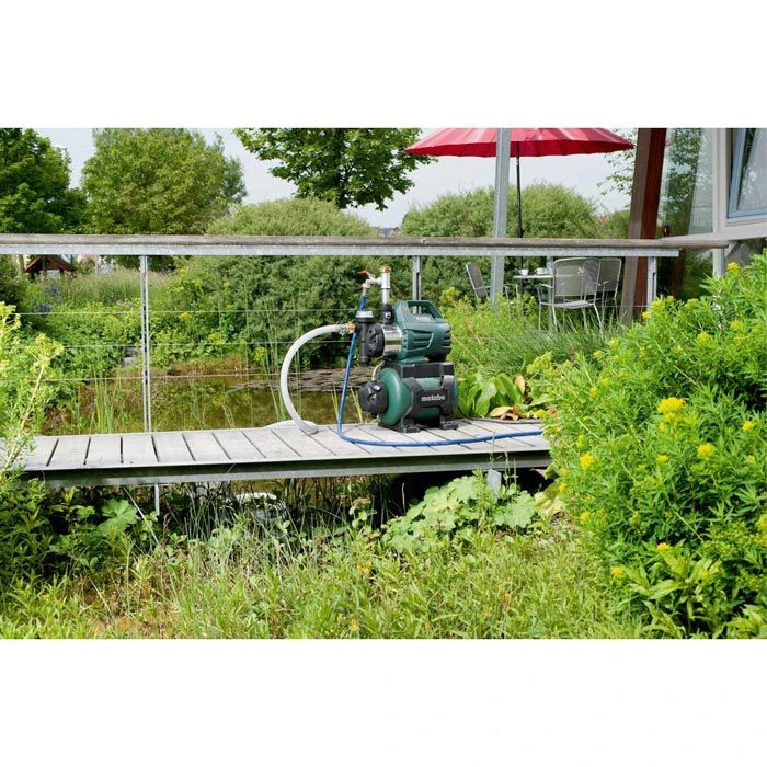 sonstiges: für die automatische Wasserversorgung, zur Gartenbewässerung, Grundwasserförderung sowie zum Fördern, Auspumpen und Umwälzen von Klarwasser, Druckkessel für energiesparendes und geräuscharmes Bereitstellen von Wasser, automatischer Trockenlaufschutz mit LED-Anzeige zum Schutz der Pumpe und für hohe Anwendersicherheit, integrierter, waschbarer Filter schützt die Pumpe vor Verschmutzungen, integriertes Rückschlagventil verhindert Leerlaufen der Pumpe beim Abschalten für kurze Wiederanlaufzeit bei erneutem Start, wartungsfreier Kondensatormotor, Überlastschutz schützt den Motor vor Überhitzung, separate Wasser-Einfüllöffnung für einfache Inbetriebnahme der Pumpe, werkzeuglose Wasser-Ablassschraube zum Schutz bei Frostgefahr, für die Gartenbewässerung mit 1 bis 3 Regnern, für Einphasen-Wechselstrom